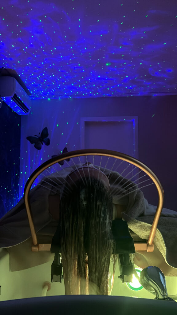 Wij gaan te werkt met producten van een extreme goede kwaliteit die zorgen voor een ontspannend en zintuigelijk comfort. Als eerst starten we met een intake gesprek en bekijken de conditie van je hoofdhuid met behulp van een camera-analyse, meteen erna neem je plaats in onze headspa kamer. Eerst krijg je een zachte scrub om je hoofdhuid op te frissen en te vernieuwen. Er volgt een ontspannende schouder en hoofdmassage om je oude spanning in uw schouders en nek wordt weggenomen en tegelijkertijd de bloedcirculatie wordt gestimuleerd voor een gezondere huid en haar. Ervaar het Japanse shampoo – en conditionerritueel, waarbij je haar minitieus wordt gereinigd en gemasseerd, waardoor niet alleen je lokken gelanzen maar ook je hoofdhuid wordt gevoed. Laat de watervaltechniek je zintuigen betoveren terwijl je conditioner wordt weggespoeld. Tijd voor de spa met een heerlijke masker en stoom. Als finishing touch worden de porien zorgvuldig afgesloten na de behandeling, waardoor je hoofdhuid in een optimaal conditie blijft.